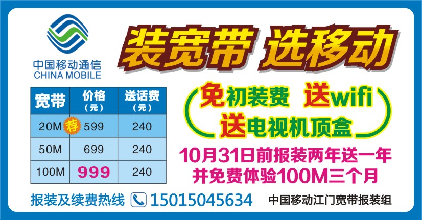 报装及续费热线:15015045634 中国移动江门宽带报装组