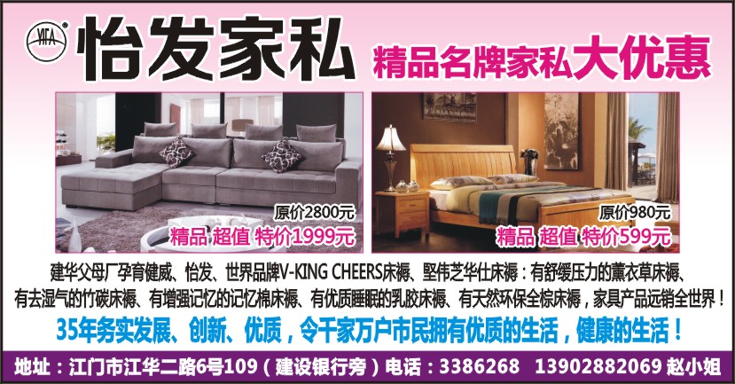 地址:江门市江华二路6号109(建设银行旁)电话:3386268 13902882069 赵小姐