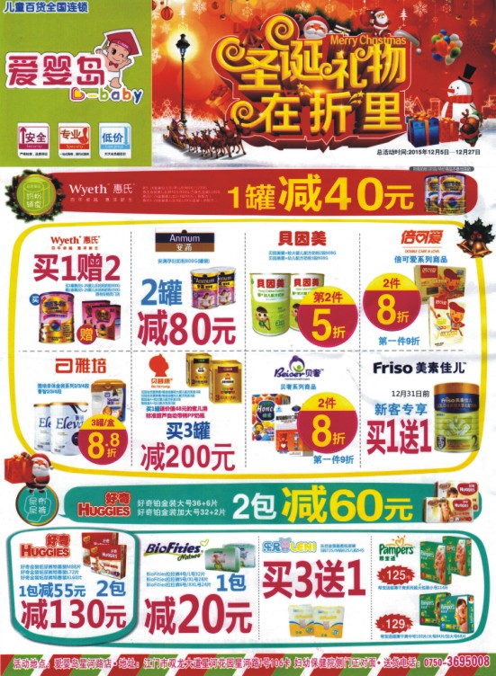 活动地点:爱婴岛星河路店 地址:江门市双龙大道星河花园星河路1号106卡 妇幼保健院侧门正对面 送货电话:0750-3695008