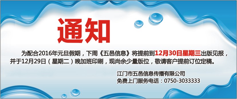 《五邑信息》官方网站,巨大的发行量决定强烈的广告效果!