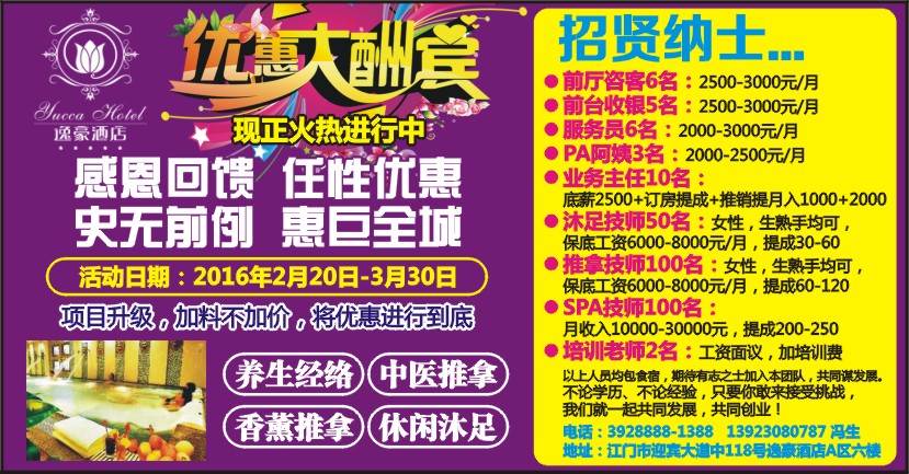 地址:江门市迎宾大道中118号逸豪酒店A区六楼