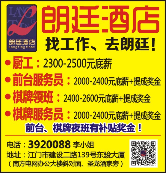 ●棋牌服务员:2000-2400元底薪+提成奖金