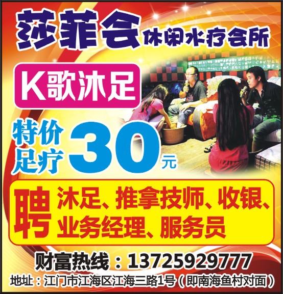沐足、推拿技师、收银、