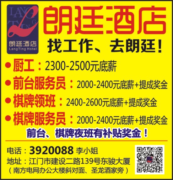 ●棋牌服务员:2000-2400元底薪+提成奖金