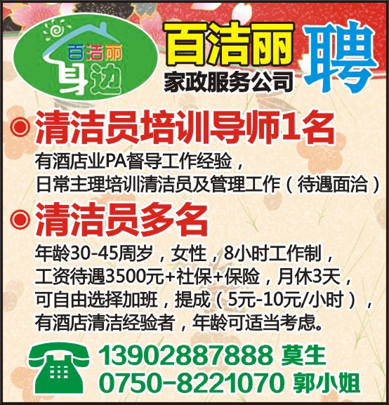 百洁丽家政服务公司聘