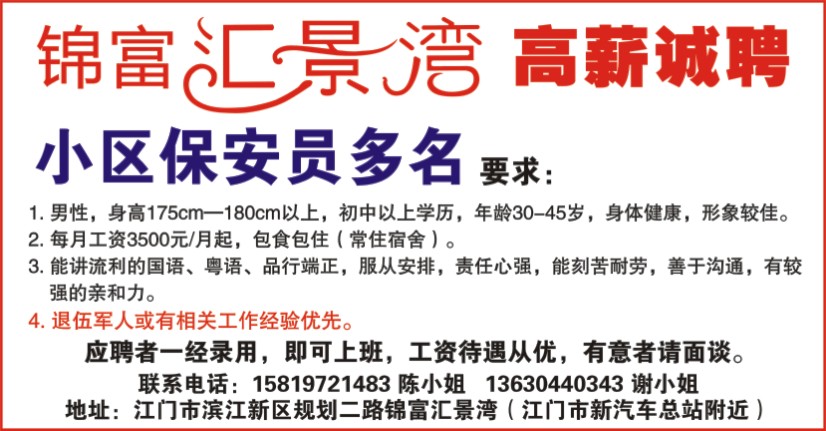 地址:江门市滨江新区规划二路锦富汇景湾(江门市新汽车总站附近) |