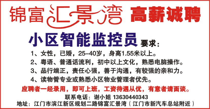 锦富汇景湾高薪诚聘