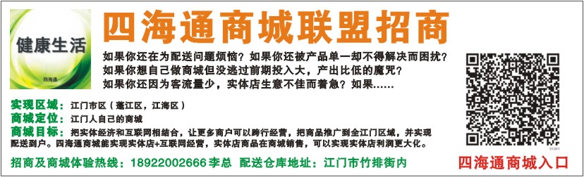商城目标:把实体经济和互联网相结合,让更多商户可以跨行经营,把商品推广到全江门区域,并实现配送到户。四海通商城能实现实体店+互联网经营,实体店商品在商城销售,可以实现实体店利润更大化。