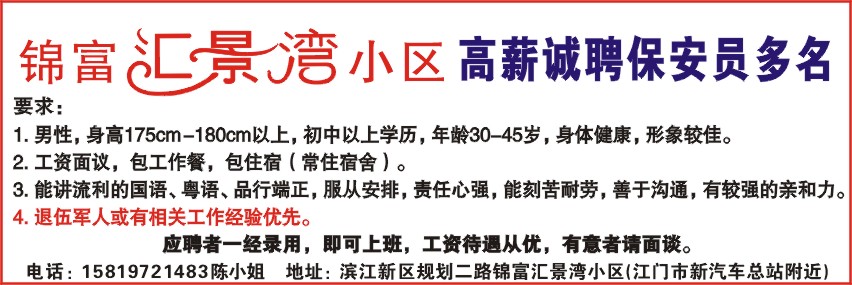 3. 能讲流利的国语、粤语、品行端正,服从安排,责任心强,能刻苦耐劳,善于沟通,有较强的亲和力。