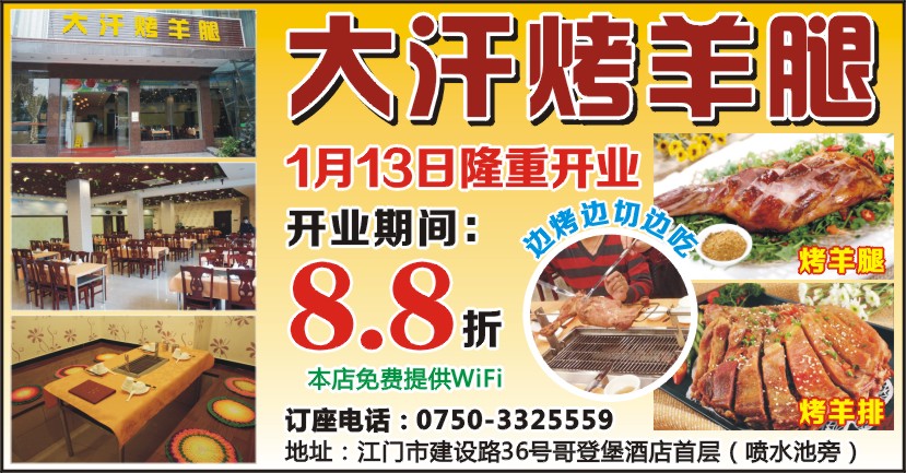 地址:江门市建设路36号哥登堡酒店首层(喷水池旁)