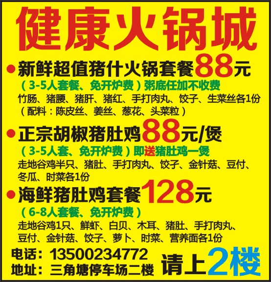 (3-5人套、免开炉费)即送猪肚鸡一煲