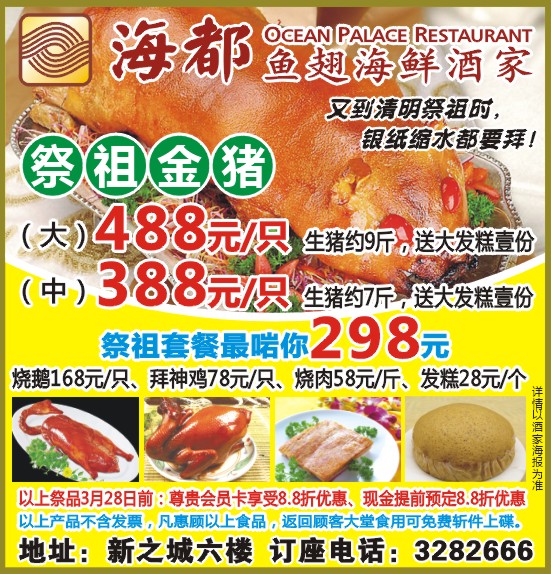 以上祭品3月28日前:尊贵会员卡享受8.8折优惠、现金提前预定8.8折优惠