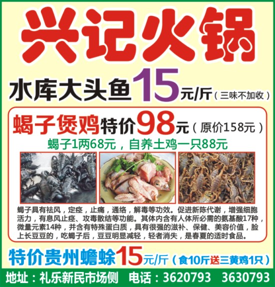 蝎子煲鸡特价98元(原价158元)