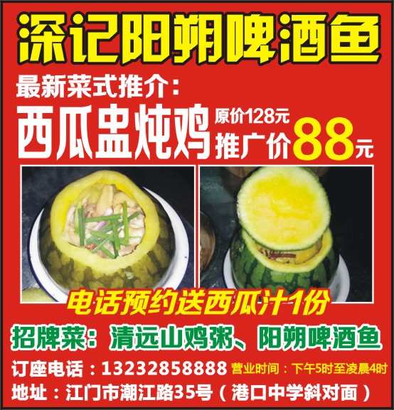 招牌菜:清远山鸡粥、阳朔啤酒鱼