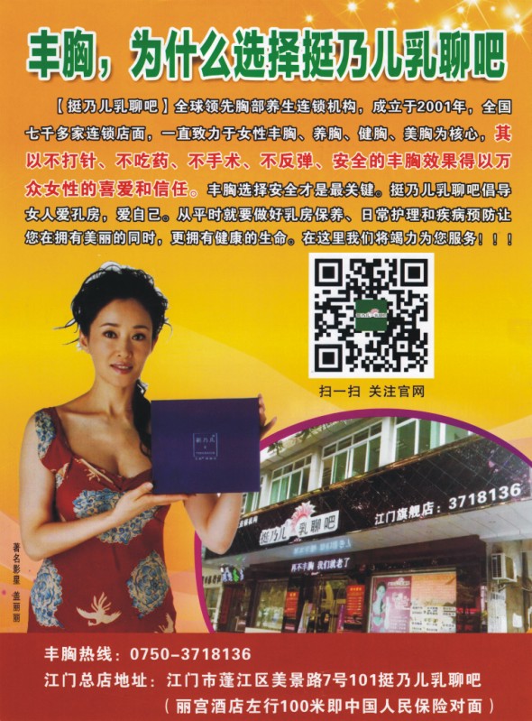 【挺乃儿乳聊吧】全球领先胸部养生连锁机构,成痒痒于2001年,全国七千多家连锁店面,一直致力于女性丰胸、养胸、健胸、美胸为核心,其以不打针、不吃药、不手术、不反弹、安全的丰胸效果得以万众女性的喜爱和信任。丰胸选择安全才是最关键。挺乃儿乳聊吧倡导女人爱乳房,爱自己。从平时就要做好乳房保养、日常护理和疾病预防让您在拥有美丽的同时,更拥有健康的生命。在这里我们将竭力为您服务!!!