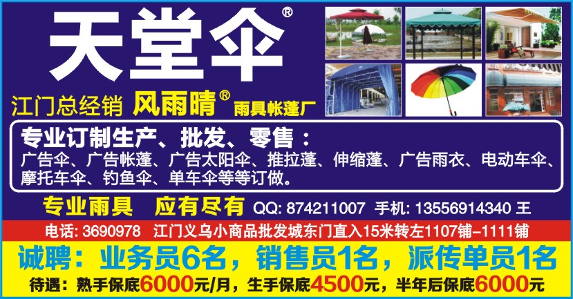 广告伞、广告帐蓬、广告太阳伞、推拉蓬、伸缩蓬、广告雨衣、电动车伞、摩托车伞、钓鱼伞、单车伞等等订做。