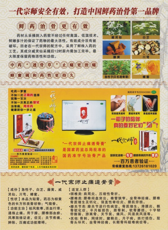 一代宗师安全有效,打造中国鲜药治骨第一品牌