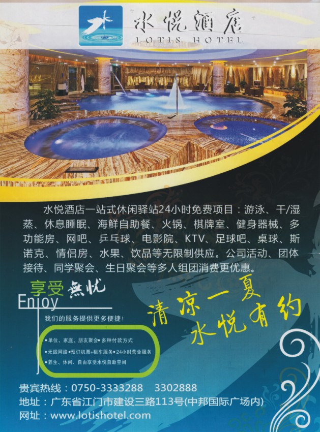 水悦酒店一站式休闲驿站24小时免费项目:游泳、干/湿蒸、休息睡眠、海鲜自助餐、火锅、棋牌室、健身器械、多功能房、网吧、乒乓球、电影院、KTV、足球吧、桌球、斯诺克、情侣房、水果、饮品等无限制供应。公司活动、团体接待、同学聚会、生日聚会等多人组团消费更优惠。