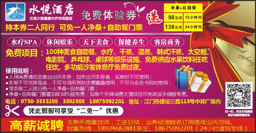 ●凭本券二人同行免一人净桑+自助餐门票;