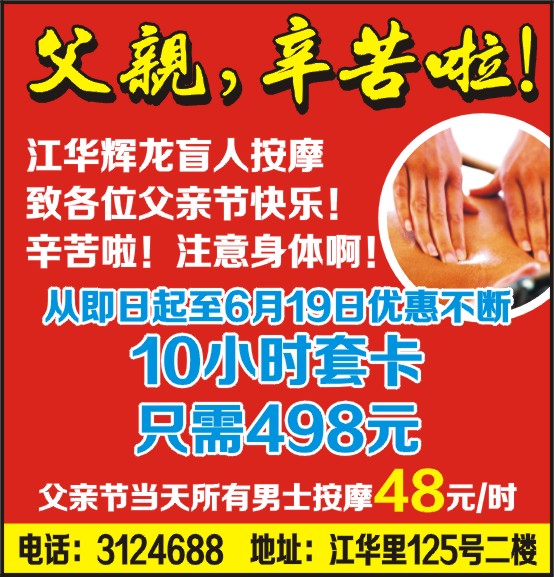 江华辉龙盲人按摩致各位父亲节快乐!