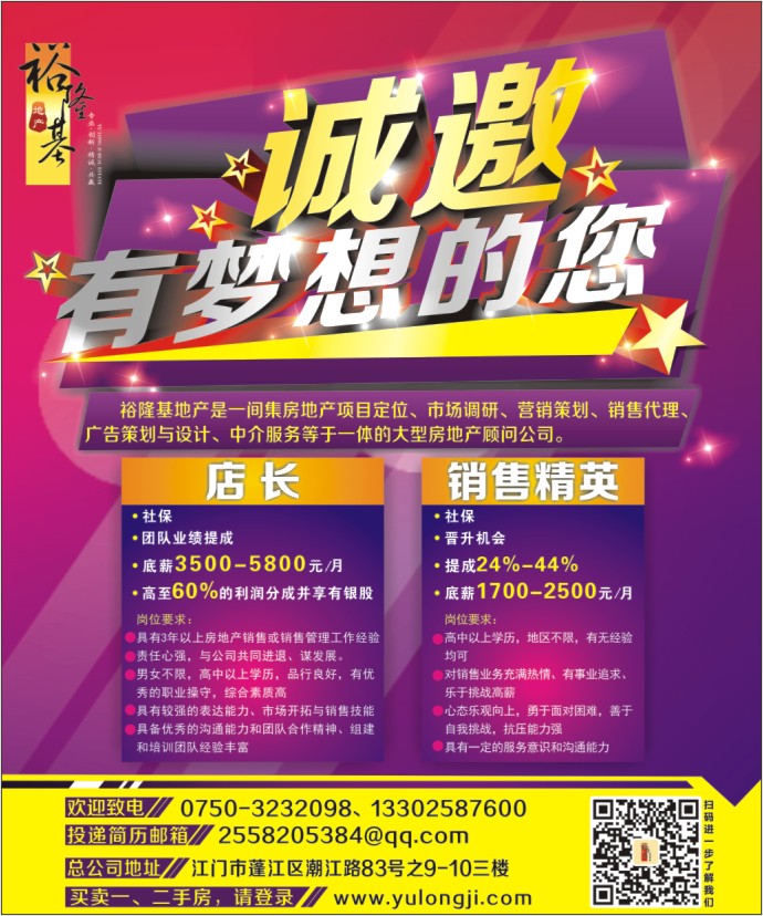 裕隆基地产是一间集房地产项目定位、市场调研、营销策划、销售代理、广告策划与设计、中介服务等于一体的大型房地产顾问公司。