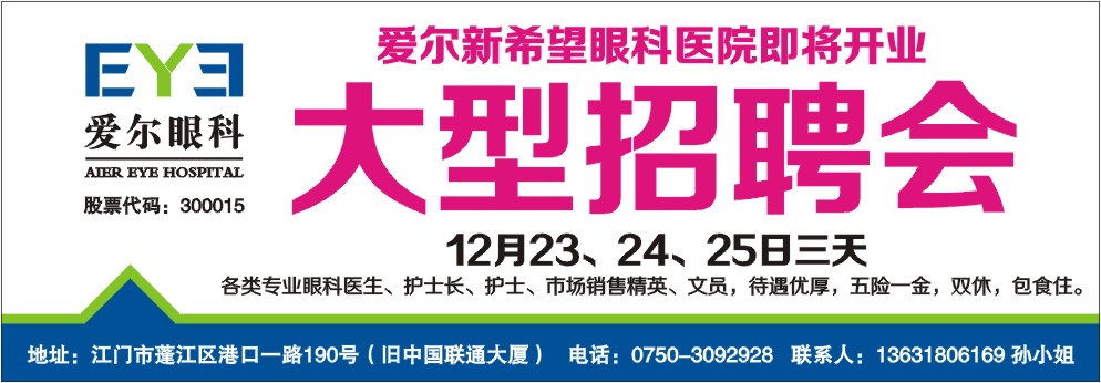 爱尔新希望眼科医院即将开业大型招聘会