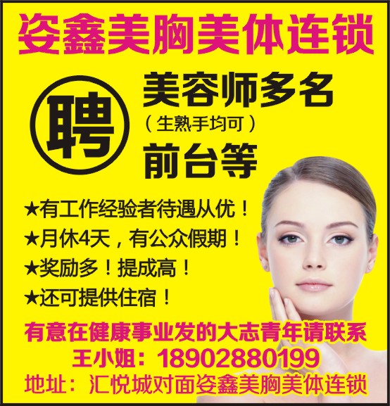 姿鑫美胸美体连锁招聘