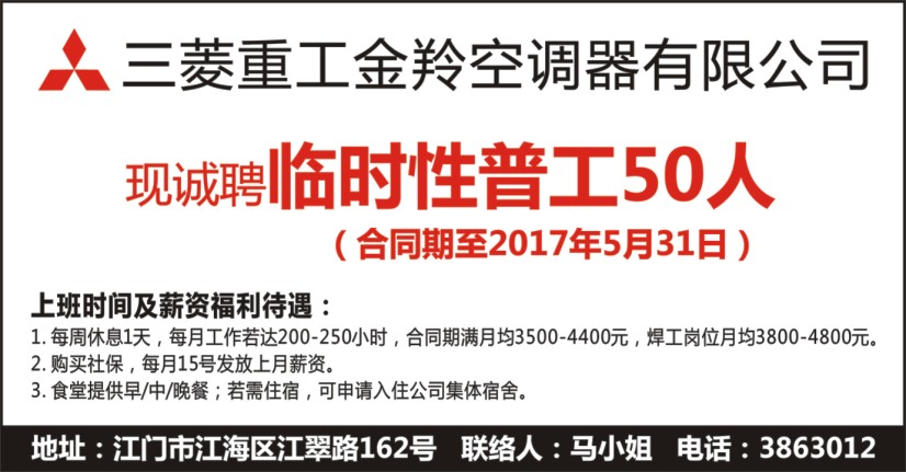 现诚聘临时性普工50人