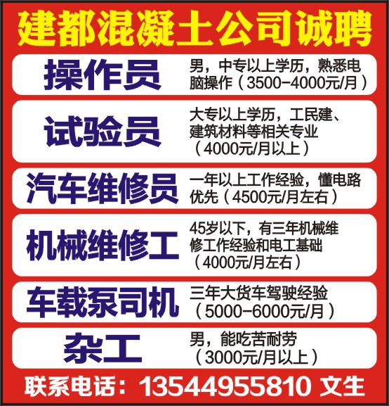 男,中专以上学历,熟悉电脑操作(3500-4000元/月)