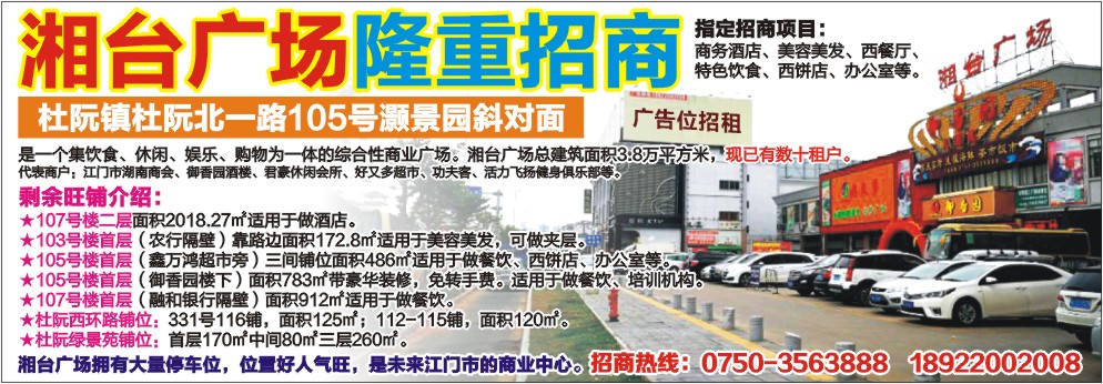 湘台广场拥有大量停车位,位置好人气旺,是未来江门市的商业中心。