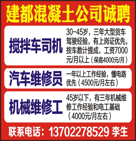45岁以下,有三年机械维修工作经验和电工基础(4000元/月左右)