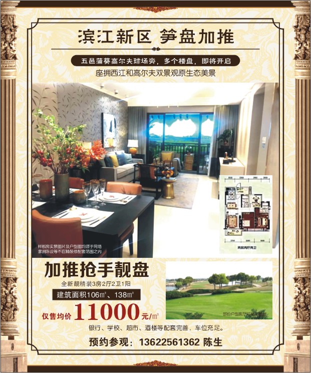 五邑蒲葵高尔夫球场旁,多个楼盘,即将开启