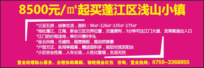 置业经理贴心服务,全程协助跟踪,谢绝佣金红包 咨询、置业热线:0750-3368855