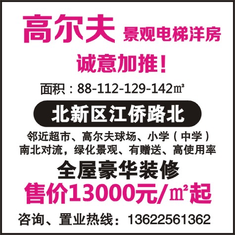 高尔夫 景观电梯洋房 诚意加推!